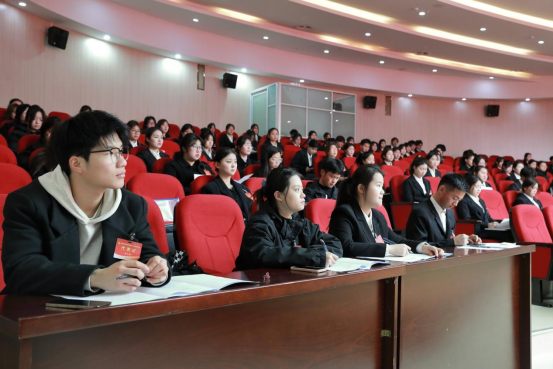 2月26日下午,学校第六次学生代表大会在图文中心四楼报告厅召开。校党委副书记牛春雨出席开幕式并讲话。校党委委员、学生处处长杨如江,各学院团总支书记出席开幕式,全校133名学生代表参加会议,会议由校团委书记陈婷婷主持。