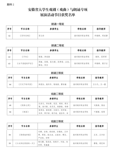 近日,由安徽省教育厅主办的全省大学生戏剧(戏曲)与朗诵专项展演评选结果揭晓。学校报送的作品荣获1个省级一等奖,4个省级二等奖,3个省级三等奖,充分彰显了学校美育育人的丰硕成果。