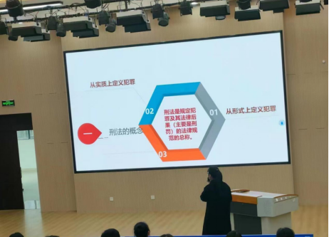 本次活动的主讲老师邀请了马克思主义学院高立萍老师。高立萍从刑法的概念、体系以及各种案例等方面进行讲解,过程中,同学们积极与老师互动,积极发表自己的观点与疑问。讲座结束后,老师还向大家补充了一些安全相关的知识,同学们听的非常投入。