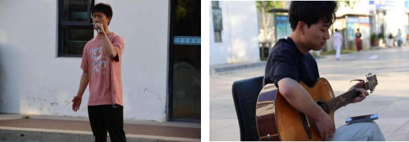 杨东升同学为我们弹唱歌曲《不能说的秘密》,吉禹州同学和唐筱同学分别演唱《动物世界》和《最长的电影》,最后闫可欣同学和闫梦雪同学合唱一首《一笑倾城》更是把大学生的青春活力展现得淋漓尽致。吉他表演的功底和他们认真的演唱,体现了他们对这次文化节的重视,也展现了大学生活和学校社团活动的多姿多彩。