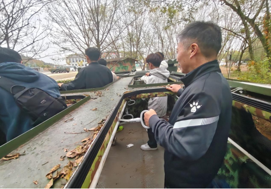 下午 13 时,国防先锋社成员分组有序体验 6x6 装甲运输车乘坐项目。伴随着车辆的轰鸣声,成员们在高速机动中感受军旅生涯的激情与热血,体悟军人使命在肩的神圣与光荣。