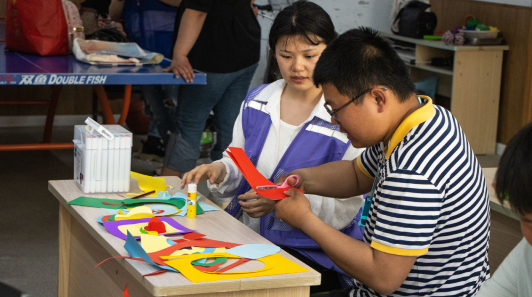 这场静默的艺术对话,是用色彩和形状书写的希望篇章。在学生志愿者的陪伴下,剪裁与拼贴不再只是手工活动,更成为打开心扉的钥匙。