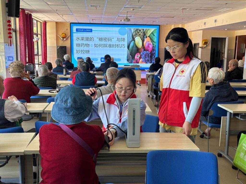 4月30日,红十字协会赴滁州市老年公寓组织开展“情暖夕阳红”关爱老年人爱心活动,本次活动通过专业义诊、健康咨询等多样化服务形式,为社区老年群体送去暖心关怀。此次活动由吕婷婷老师带队。活动中,成员们认真地为每一位前来咨询的老年人进行身体检查,包括量血压、测血糖等常规检查,并耐心解答老年人关于养生、常见疾病预防等健康问题,给予专业的治疗建议和贴心的健康指导,帮助老年人更好地守护自己的健康。
