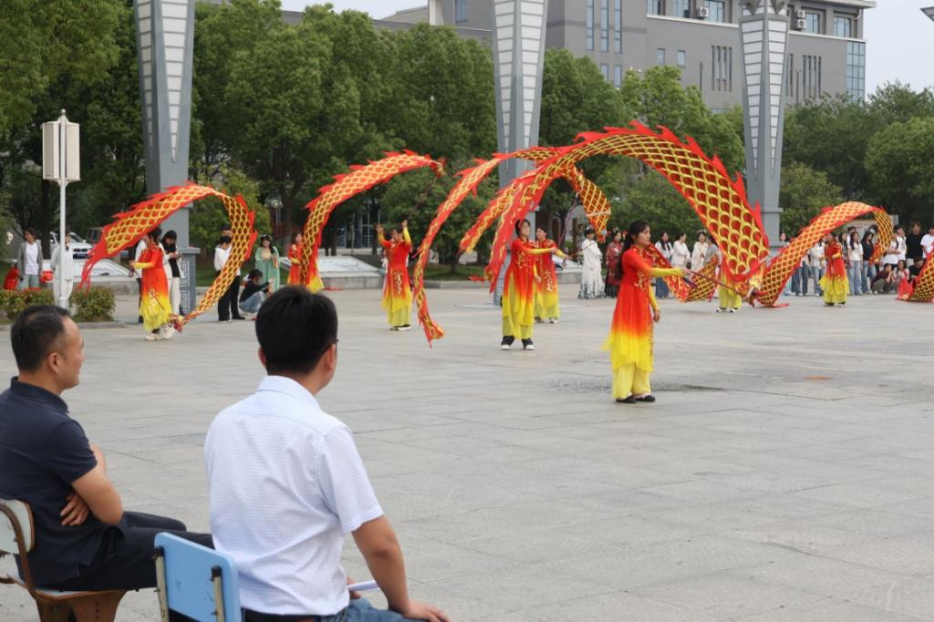 5月26日下午滁州城市职业学院第二届中国文化推广周在南广场盛大启幕。作为开幕重头戏,龘龘舞龙社以一场气势恢宏的表演点燃全场热情,吸引师生驻足观赏。伴随着激昂鼓点,身着金鳞战甲的“大龙”率先登场。十名队员默契配合,红龙腾跃翻飞,穿梭、盘柱等高难度动作一气呵成。随后“彩带龙”惊艳亮相,七色彩绸随龙身流转,舞者以柔克刚的身姿与流光溢彩的绸龙相映成趣。压轴环节中,两支队伍创新融合,巨龙昂首引领,彩龙环绕翩跹,刚柔并济的“二龙戏蛛”将传统技艺与现代编排完美结合,赢得阵阵喝彩。