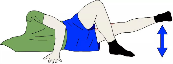 操作:拧紧四头肌,慢慢向上推腿。当你在顶部位置,尝试旋转你的腿(在臀部整腿)。你会掉下你的股四头肌如何工作。重复旋转几次,然后左右移动你的腿。尝试画一个圆,但不要忘记,慢慢地做所有的练习。