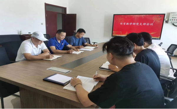 2023年8月29日下午,体育教学部党支部在体育馆二楼会议室召开支部党员大会,会议由支部书记马肖义主持,支部全体党员参加会议。