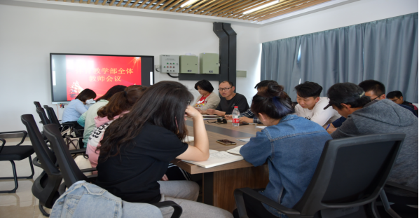 5月4日下午3点,体育教学部在体育馆二楼会议室召开全体教师会议。学习、传达学校有关教育教学的相关会议精神,部署体育教学期末工作的具体事宜,并对2022-2023学年第一学期教学任务展开工作安排,体育教学部全体教职工参加了本次会议。会议由部门主任许恒正主持。