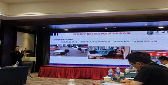 研讨会上滁州计算机学会秘书长于春燕作了《教育数字化转型的思考与应用》主题报告;华为专家就全光校园解决方案与应用实践、IPV6/ IPV6+助力下一代教育网络发展作了技术分享;与会院校分别就各自学校智慧校园建设情况和存在的问题进行了广泛交流。