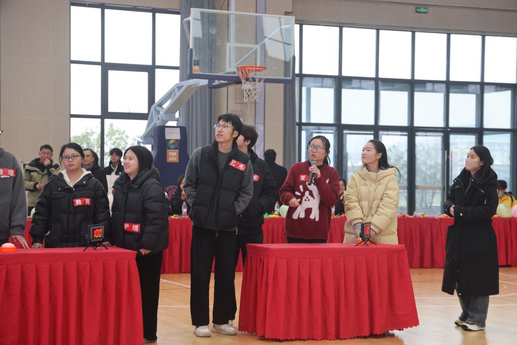 尤为暖心的是,校领导班子成员全程参与其中,亲身加入拔河、跳绳、蒙眼转圈喂食物等多个环节,与同学们并肩竞技、默契配合,现场掌声与欢呼声此起彼伏,充分展现了“与生同乐”的温馨氛围。