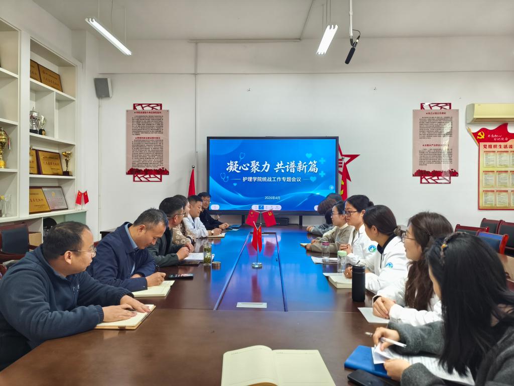 4月23日下午,护理学院党总支在党员活动室召开统一战线工作专题会议。党总支委员、各民主党派代表、无党派人士代表及学生代表参加会议。会议由护理学院党总支书记席民主持。