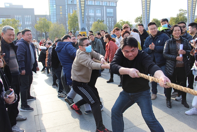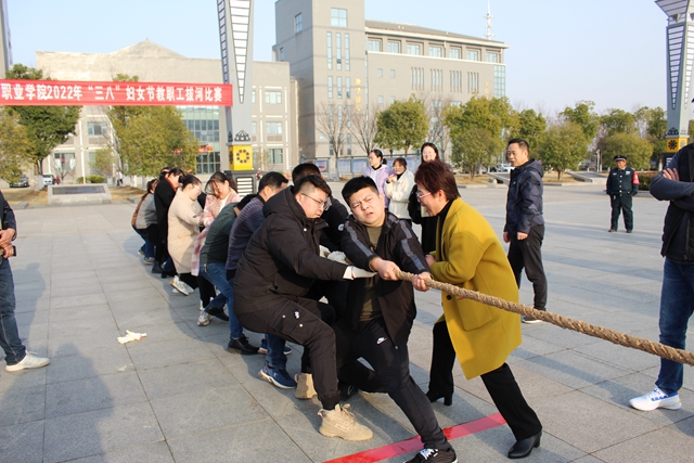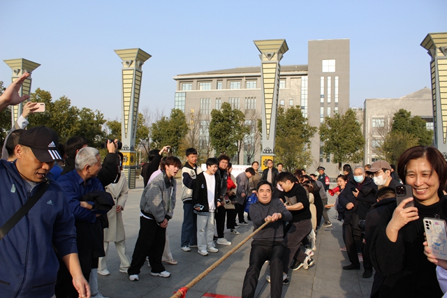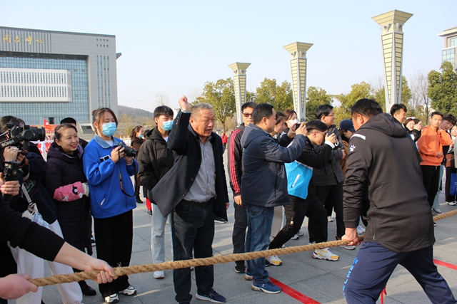 3月2日下午,我校工会在图文中心南广场举行2022年教工拔河比赛,校领导施向阳宣布首场比赛开赛,来自八个分工会的参赛队员及拉拉队近400人参加了活动。