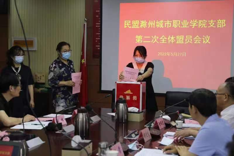 2022年5月27日下午,民盟滁州城市职业学院支部在学校图文中心六楼第三会议室召开第二次全体盟员会议,选举民盟滁州城市职业学院支部新一届委员会。民盟滁州市委主委江海、学校党委委员、办公室主任、宣传统战部部长陈通出席会议。支部主委傅道生主持会议。