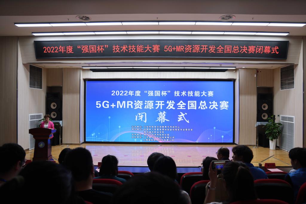5月14日上午,2022年度“强国杯”技术技能大赛5G+MR资源开发全国总决赛我校圆满闭幕。中国电子质量管理协会副理事长杨智宝、虚拟现实专委会副主任王怀群、秘书长程聪、滁州城市职业学院校长党委副书记、汪上、党委委员、副校长曹士东,广东虚拟现实科技有限公司高级副总裁闫成兵、上海遥知信息技术有限公司总经理王滔等领导和嘉宾出席闭幕式,全体裁判长、参赛选手、学校相关人员参加闭幕式。闭幕式由程聪主持。