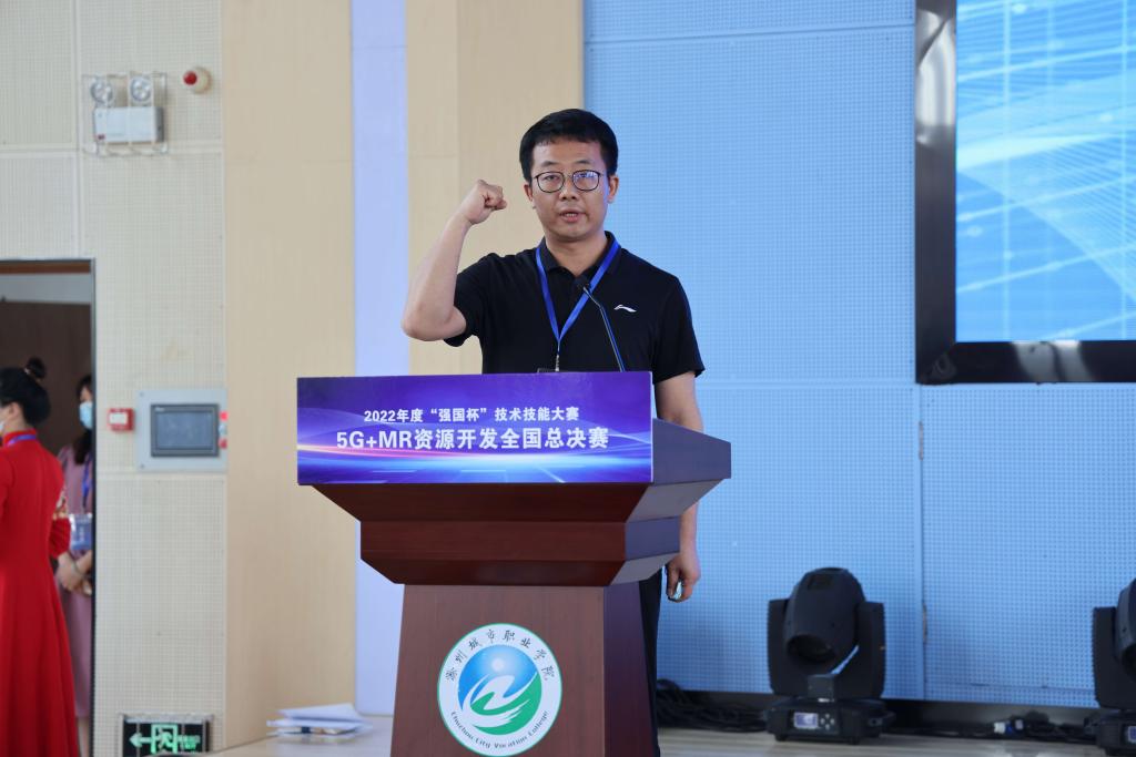 匠心铸精神,技能耀未来。5月13日上午,2022年度“强国杯”技术技能大赛5G+MR资源开发全国总决赛在我校体育馆顺利开幕。本次大赛由工业和信息化部教育与考试中心主办,中国电子质量管理协会虚拟现实专业委员会、滁州城市职业学院承办,滁州市经济和信息化局支持。来自江苏、安徽、天津、河南、山东、河北、湖北、广东、上海、江西等地近30支教师和学生队伍参赛。