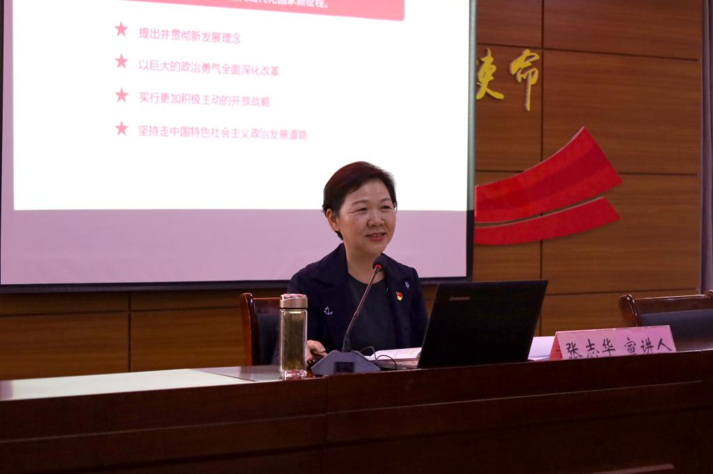 张志华紧扣党的二十大报告原文,紧密结合社区实际,重点围绕党的二十大的重大意义、大会主题和主要成果、过去5年的工作和新时代10年的伟大变革、“两个确立”的决定性意义、坚持党的全面领导和全面从严治党、团结奋斗的时代要求等方面,对党的二十大精神进行了宣讲和阐释。