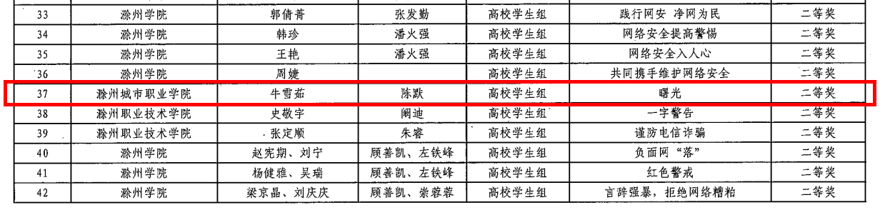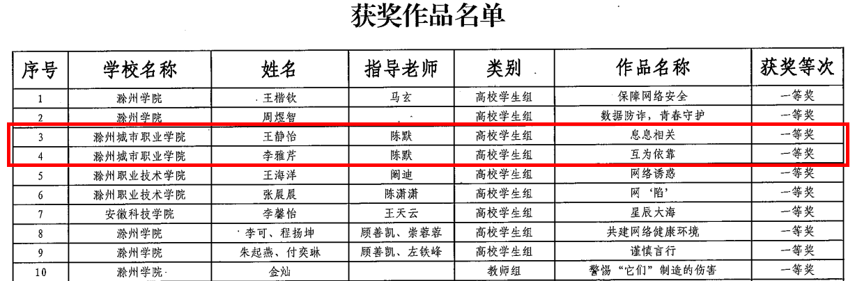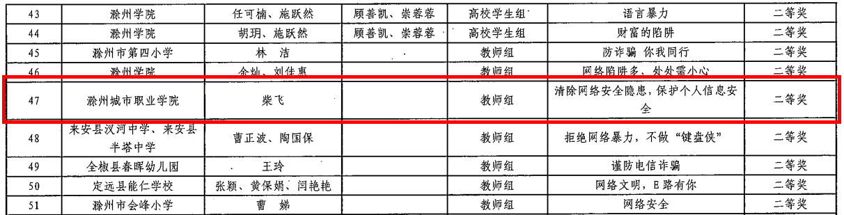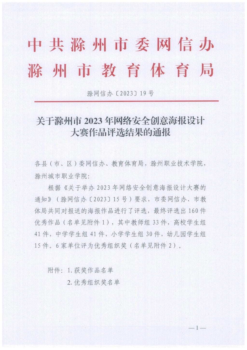 同时,王婧怡同学和陈默老师作为获奖代表,受邀参加由市委宣传部、市委网信办、市教体局等15个部门联合举办的2023年滁州市网络安全宣传周暨网络文明宣传月启动仪式。