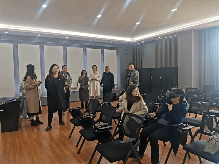 会后,该校马院副院长(主持工作)王娜娜引导考察团参观了该校马院的南京地方党史展厅、VR思政课教育实训室、法治教育实训室、国防教育展厅、新时代实训长廊等校内实践基地。在VR思政教育实训室,王娜娜重点介绍了南京城市职业学院在思政课虚拟仿真实践教学中心建设中的情况,并体验思政课虚拟仿真沉浸式教学和交互式教学,就虚拟仿真中心建设过程中存在的和可能会遇到的问题进行了深入地交流。