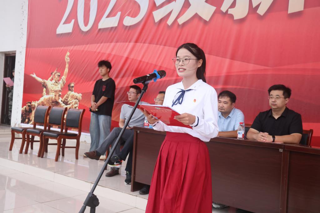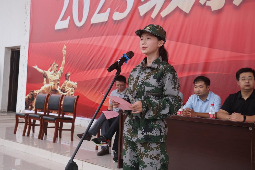 承训部队政治部副主任薛锋代表军训部队官兵讲话。他说,军训是同学们踏入大学校园的一门重要必修课,不仅是国防教育的重要组成部分,更是锤炼意志、塑造品格、挑战自我的宝贵机会。他表示,承训教官团队将科学组训、严格管理,确保训练安全与成效。希望全体同学端正态度,迎接挑战,把自己当成一名真正的“战士”,不怕苦、不怕累,以饱满的热情和高昂的斗志投入训练。