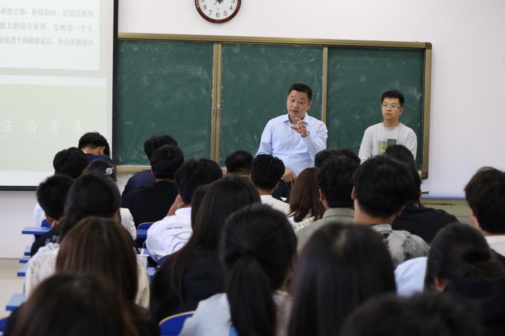王燕永与汪上分别走进班级与新生们共同聆听第一节思想政治理论课。