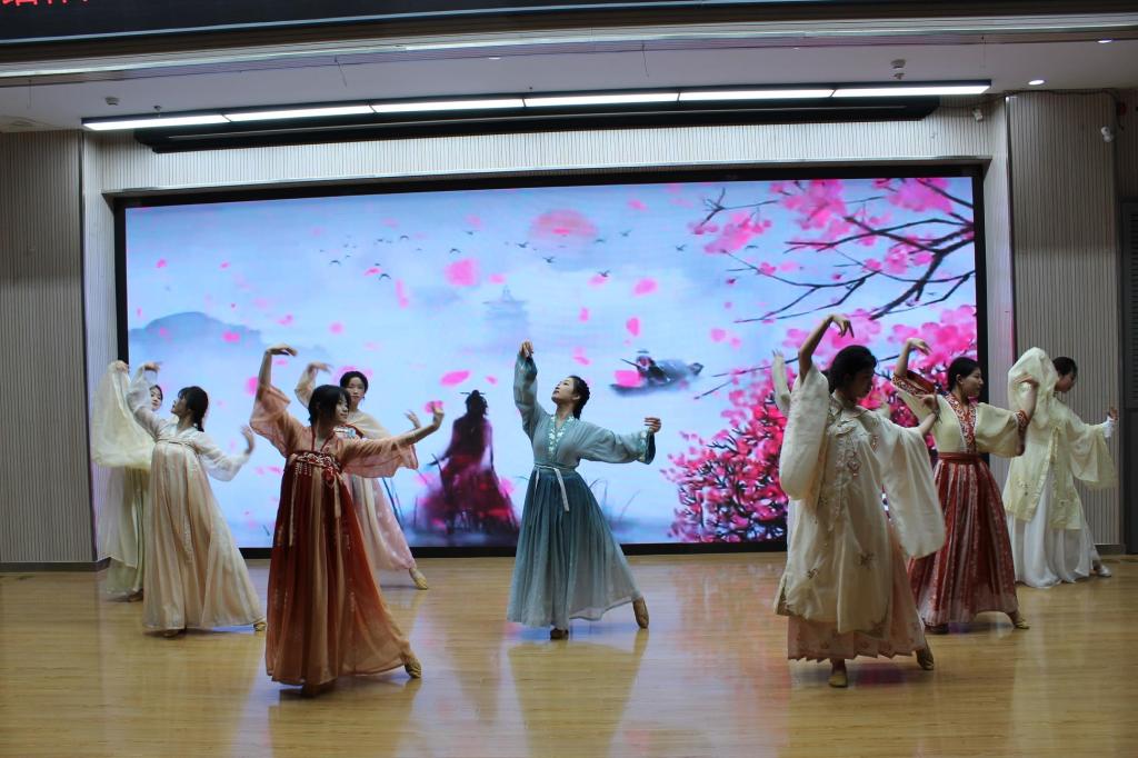 教育学院刘亚玲等同学表演舞蹈《春光》,她们以婀娜的姿态演绎出如诗如画的春天色彩。