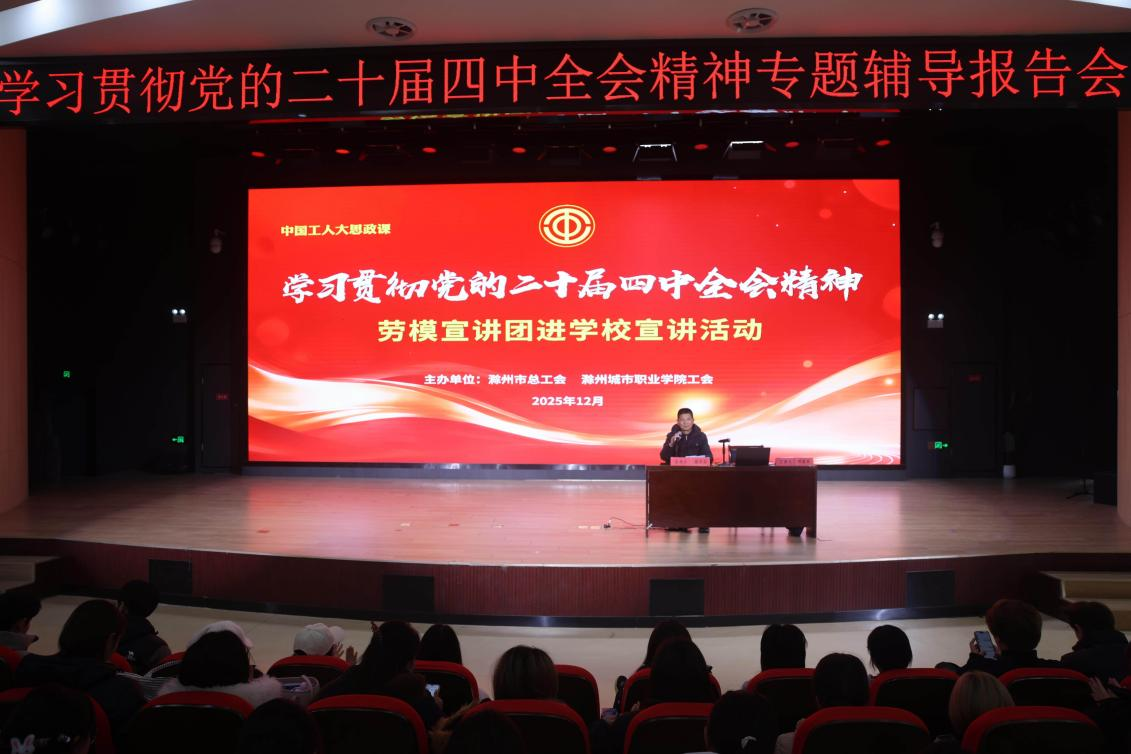 市总工会党组成员、经审会主任唐林在讲话中指出,党的二十届四中全会为新时代新征程的发展指明了方向,劳模群体是践行全会精神的标杆典范。此次组织劳模宣讲团进校园,旨在让青年学子近距离感受劳模风采,将全会精神与劳模精神、劳动精神、工匠精神相结合,厚植劳动情怀,树立远大理想。