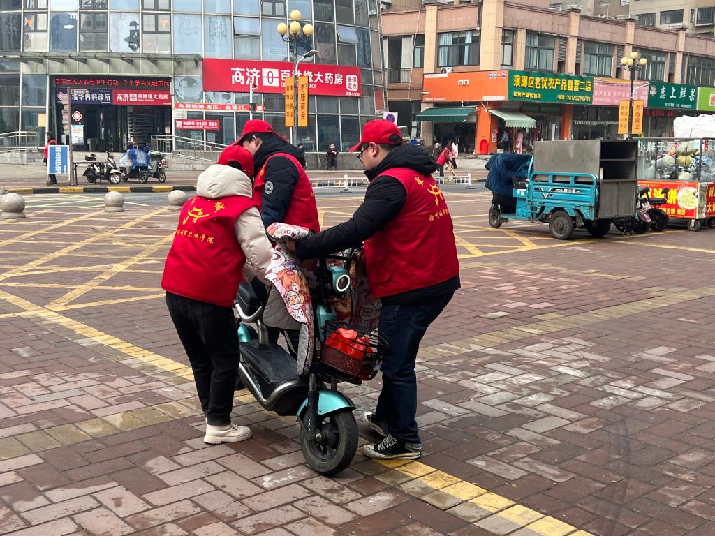 志愿者们对非机动车进行规范摆放,对小区绿化带内生活垃圾进行清理,志愿者们的行为加强了社区居民的安全意识、文明意识。