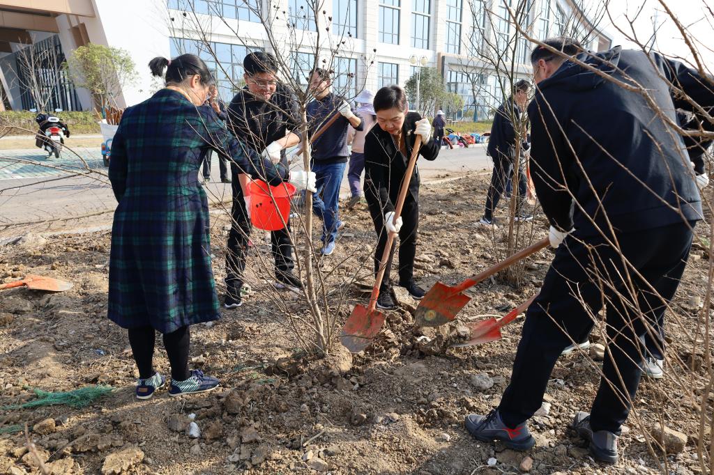 3月11日上午,在第44个植树节到来之际,为深入践行习近平生态文明思想,美化校园环境,推动学校创建安徽省绿色学校,我校在多功能体育馆南面空地开展义务植树活动。校领导张志华、牛春雨、曹士东、徐云川、陈通、杨如江、高国柱,各部门负责人及学生志愿者代表参加了活动。