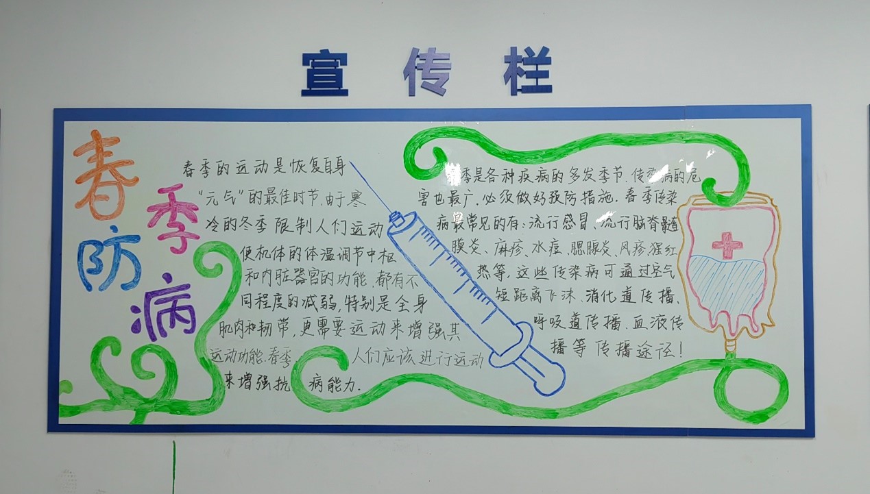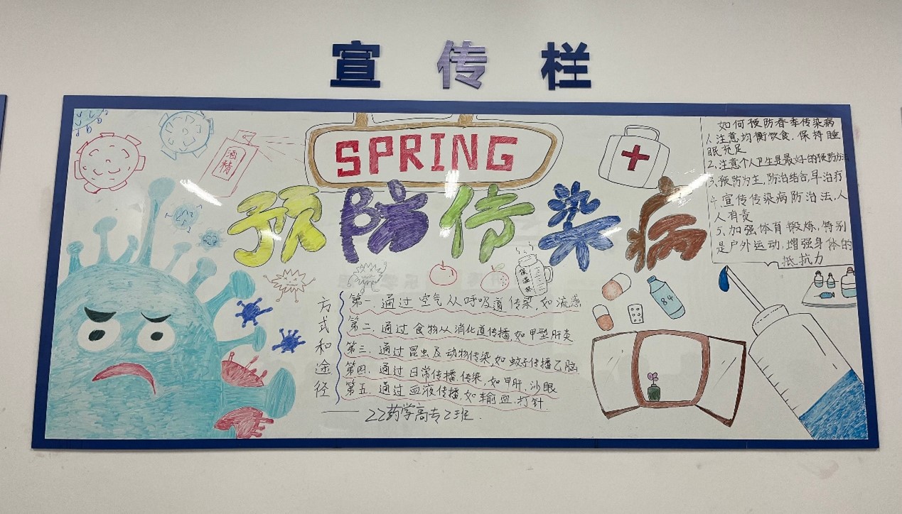 此外,各班级还通过板报对春季传染病防治进行宣传,在班级内营造了预防春季传染病的良好氛围,让学生学习到了更多有关预防春季传染病的知识。