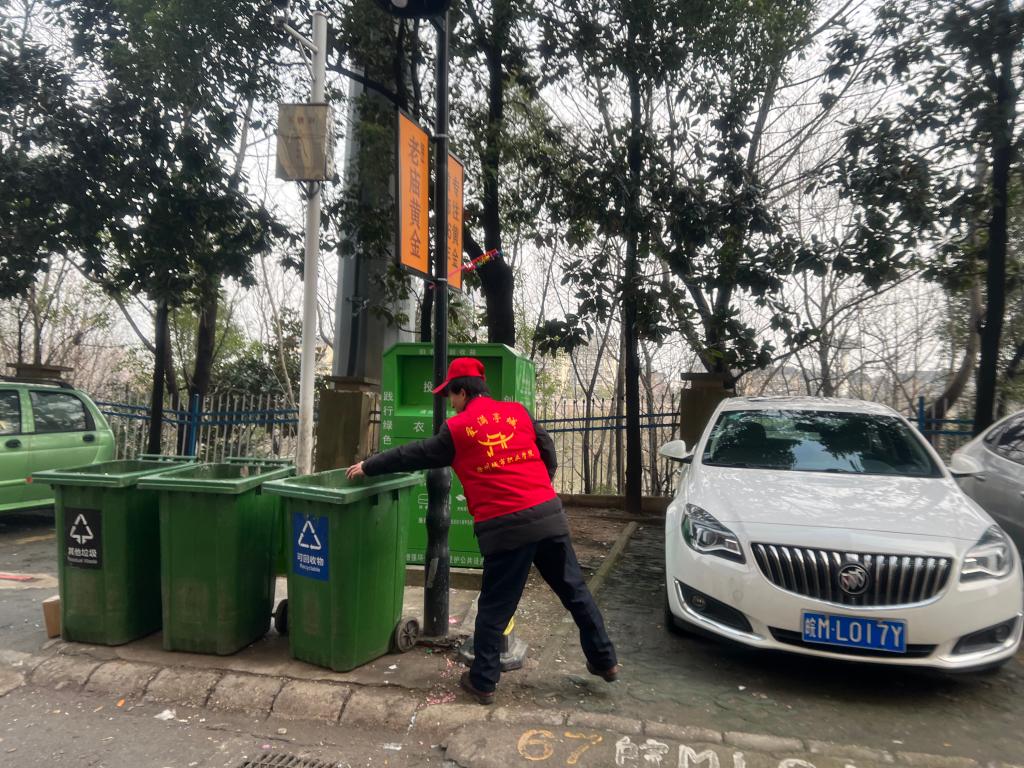 志愿者们对非机动车进行规范摆放,对小区绿化带内生活垃圾进行清理,志愿者们的行为加强了社区居民的安全意识、文明意识。