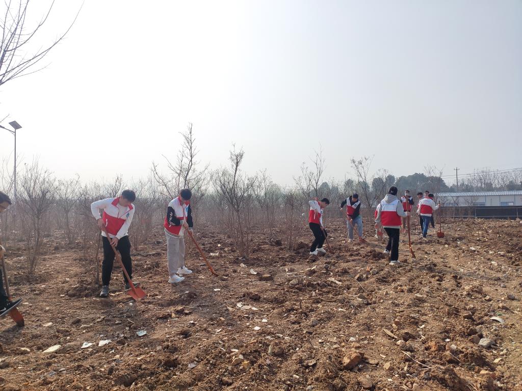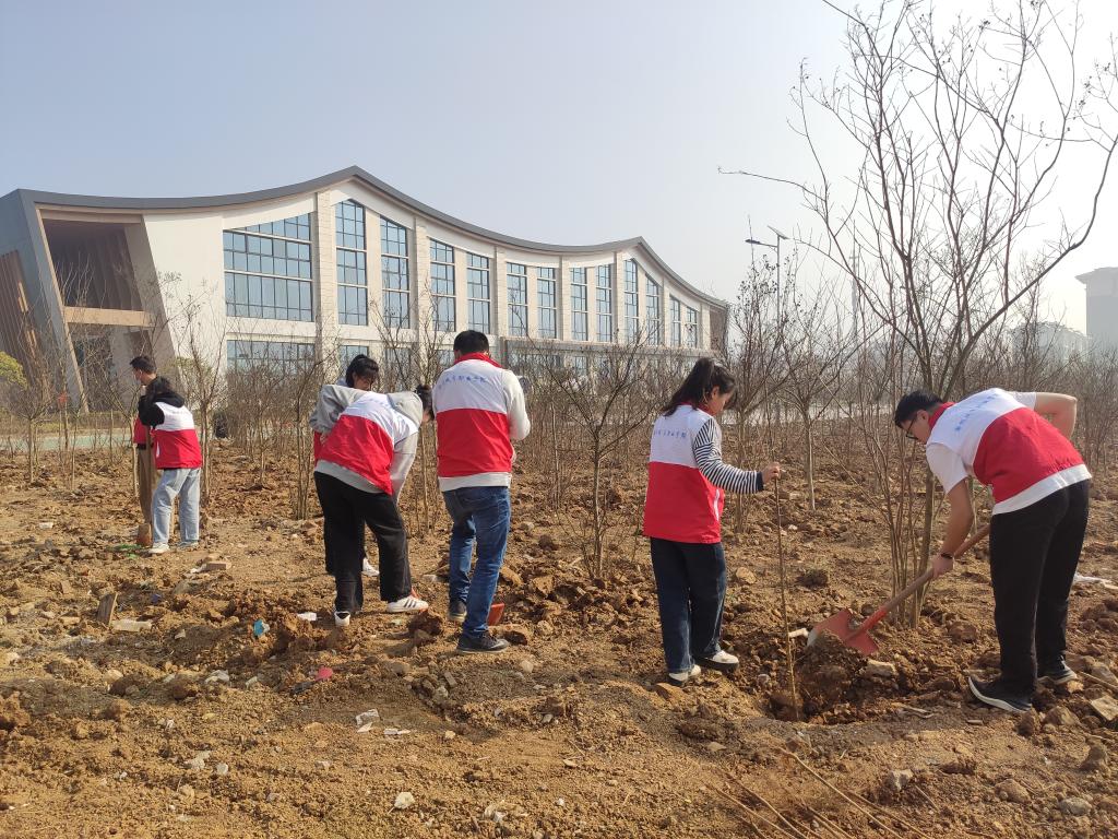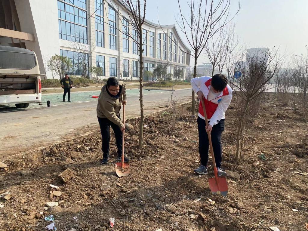 植树活动开始后,大家纷纷挽起袖子,拿起铁锹,积极投入到义务植树活动中。大家配合默契,干劲十足,或挥锹铲土,或扶苗培土,或踏土夯实,每道工序都专注细致、一丝不苟,合力栽下一棵棵树苗,一派忙碌有序的劳动场景,处处洋溢着植绿护绿的欢声笑语。在师生的共同努力下,一排排树苗昂然挺立,迎来了它们在滁城院的第一个春天,不久将成为校园里一道靓丽的风景。