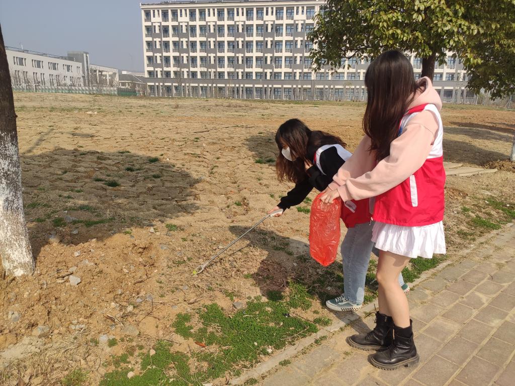 随后同学们又开启了美化校园志愿活动。20名志愿者分为5组,划分出不同卫生区进行清理。各个小组成员带着清洁工具在划分好的区域,清扫枯枝落叶、杂草杂物,拾捡烟头等,充分发挥了不怕苦、不怕累、任劳任怨的精神,不仅充分彰显了青年志愿者的先锋模范作用,而且也树立起了青年志愿者的良好形象。在经过志愿者们一番辛苦的劳动后,校园环境得到了很大的改善。