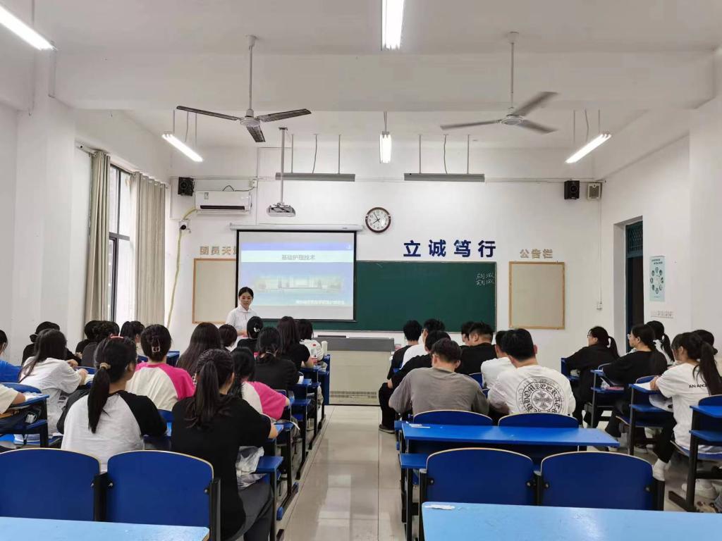 张志华书记和蔡季秋书记走进20护理初专2班,与学生共同聆听杨燕老师《基础护理》第一节课。课堂上,他们仔细观察、认真记录,课后,又分别与师生们亲切交流,对杨燕老师的教学态度、教学内容、课堂教学组织等给予充分肯定,鼓励学生不断夯实专业基础知识,不断提高护理技能水平和服务社会的能力,为学校建设技能型高水平大学、为护理学院专业群建设争光添彩。