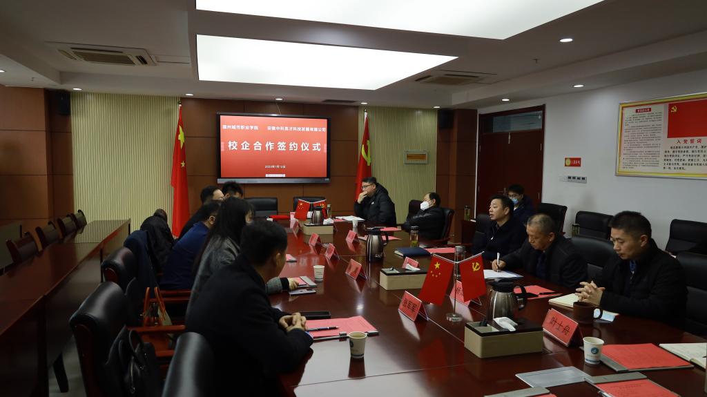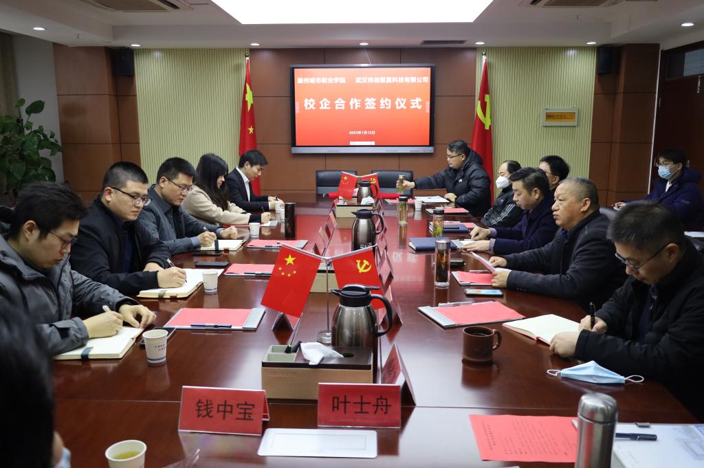 汪上代表学校分别与武汉伟创聚赢科技有限公司总经理陈强、安徽中科英才科技发展有限公司总经理谢绍华签署了合作协议。