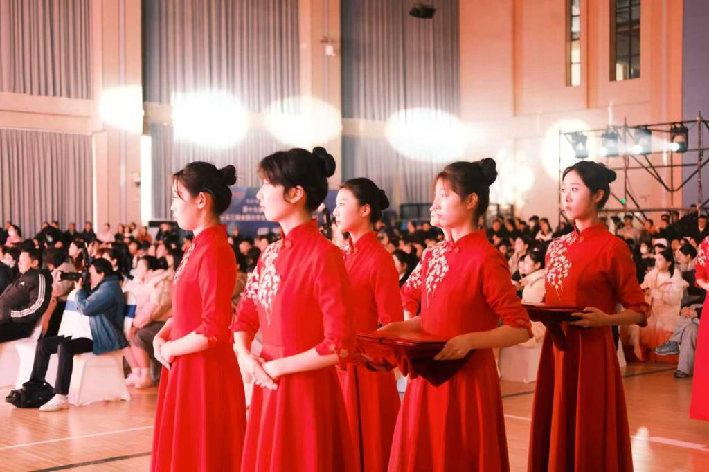 闭幕式上,由我校80余名学生组成的演出团队呈现了涵盖舞蹈、歌曲、朗诵等多种形式的精彩节目。《凤阳花鼓》拉开演出帷幕,铿锵的鼓点与青春的舞步交织,既展现了深厚的文化传承,也敲响了新时代学子奋发向上的精神节拍。原创歌曲《青春的方向》、舞蹈《光亮》、朗诵《青春报告》及职业规划大赛主题曲《追光》等节目依次上演,生动展现了新时代大学生将个人理想融入国家发展的精神风貌。