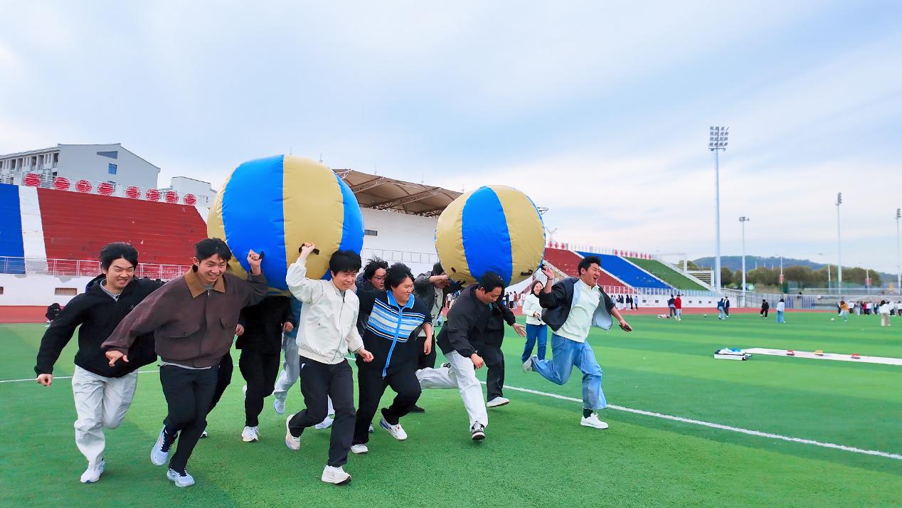 活动现场,学生们在团队契约中快速进入状态。本次拓展活动设置旱地龙舟、无敌风火轮、托球跑接力、跳大绳、旱地冰壶五个积分制项目,兼具协作性与竞技性。各队在比赛中默契配合、奋勇争先,现场气氛热烈,加油声与欢笑声此起彼伏。