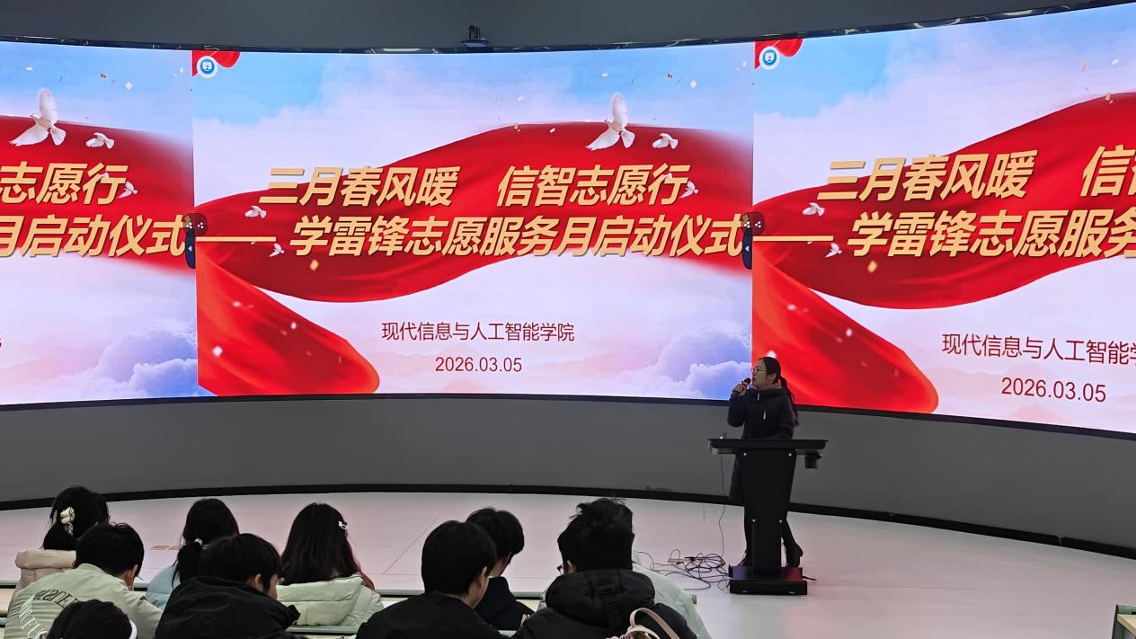 为大力弘扬雷锋精神和“奉献、友爱、互助、进步”的志愿精神,3月5日,现代信息与人工智能学院学雷锋志愿服务月启动仪式暨2026 年度第一期信智大讲堂在润德楼一楼报告厅顺利开讲。学院团总支书记王校怡担任本期大讲堂主讲人,学院师生代表齐聚现场,共同开启本年度学雷锋志愿实践新征程。