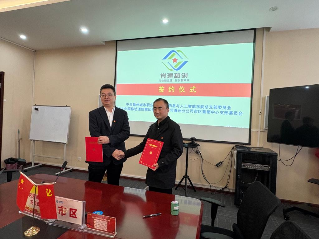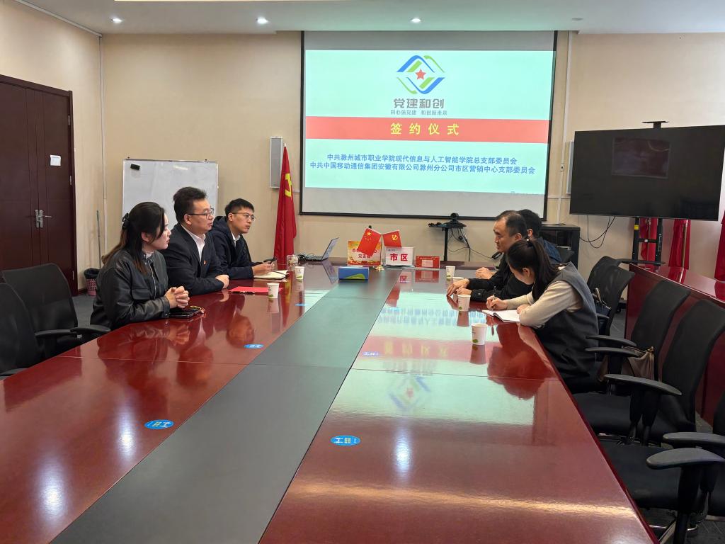为充分发挥党建引领作用,深化校企合作内涵,拓宽毕业生就业渠道,11月7日,现代信息与人工智能学院党总支组织党员代表、专业教师代表,赴中国移动滁州分公司开展交流活动,随后与中共中国移动通信集团安徽有限公司滁州分公司市区营销中心支部委员会举行党建和创暨访企拓岗合作洽谈活动。双方相关负责人共同参与了此次系列活动。