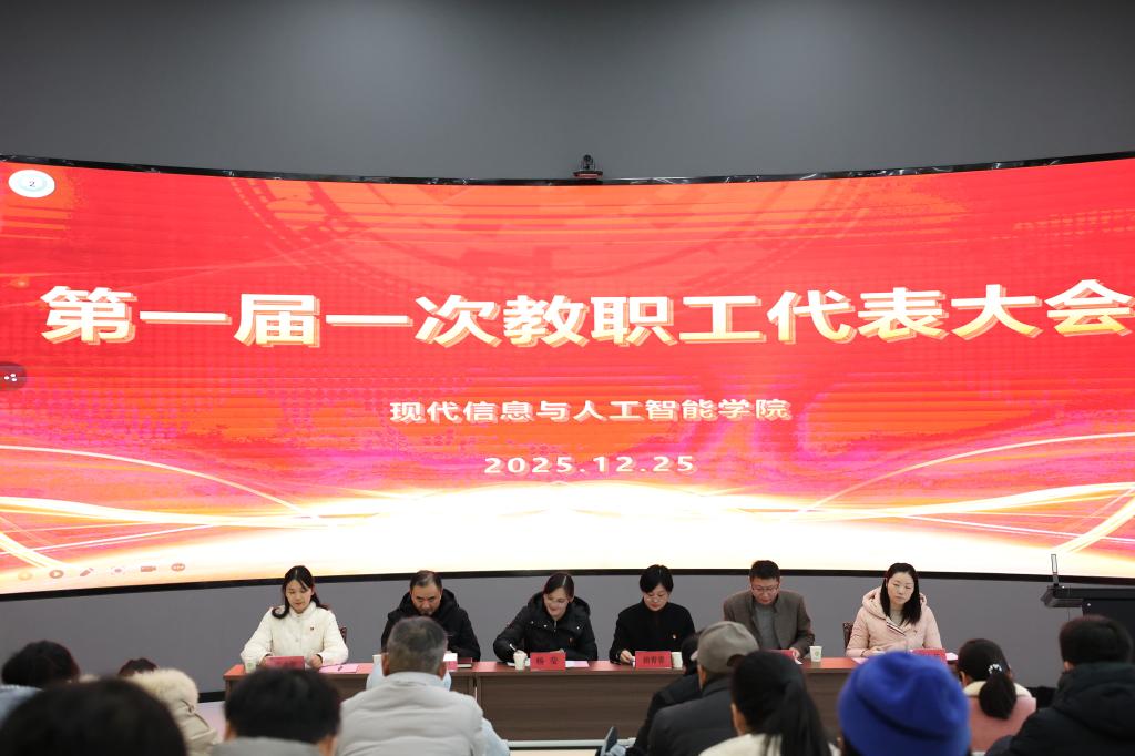 12月25日下午,现代信息与人工智能学院第一届教职工代表大会第一次会议暨第一届工会会员代表大会在润德楼一楼报告厅胜利召开。学院党总支书记卢齐伟主持会议,校党委委员、组织人事处处长杨莹,校学生处副处长田青青应邀出席,院长韩峰,副书记、分工会主席张少敏及全体教职工参加了会议。