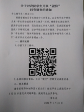 我院开展2020大学生资助诚信教育主题月活动 为积极培育和践行社会主义核心价值观,增强当代大学生的诚信意识和责任意识,全面贯彻落实家庭经济困难学生资助政策和省学生资助管理中心关于《大力开展高校学生资助诚信教育主题活动的通知》要求,今年,我院继续开展学生资助诚信教育主题月活动。本次活动由学生处统筹,各系部、各班级具体组织开展,一场内容丰富、特色鲜明的诚信育人活动在五月的校园迅速展开。 根据当前疫情防控要求,本次活动采取线上与线下联动的形式,保证宣传实效。一是对全校学生开展“诚信”网上问卷调查,了解学生情况,针对存在的问题进行思想教育;二是通过微信平台向学生推送国家助学贷款和诚信考试宣传片,详细介绍国家助学贷款政策、申贷流程、还款流程、违约危害、诚信考试等相关知识;三是各系组织在校学生开展诚信月签名、诚信讲座、诚信宣誓、诚信主题班会、诚信教育考试等活动。