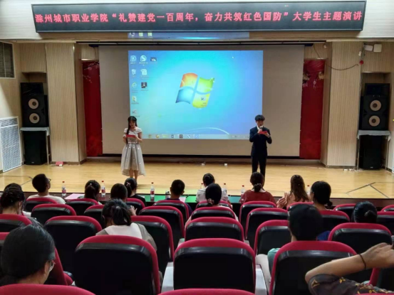 为进一步强化大学生的国防意识,切实推进以爱国主义为核心的大学生国防教育,6月10日下午,滁州城市职业学院在四楼报告厅举办2021年“礼赞建党一百周年,奋力共筑红色国防”主题演讲比赛。