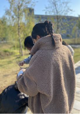 活动伊始,同学们一起走在熟悉的校园,收集落叶,感受美好,在亲近大自然的同时,疗愈心灵。