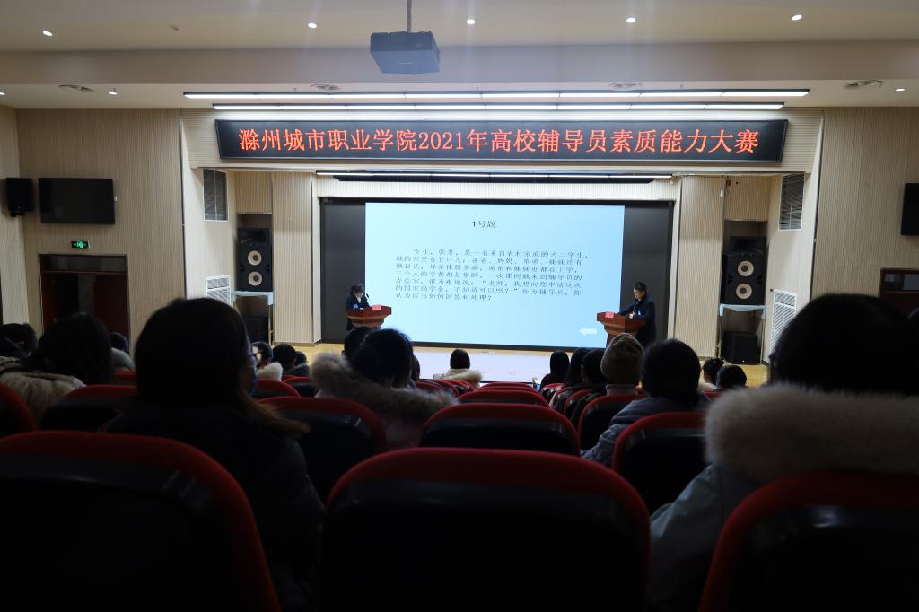 为进一步加强辅导员队伍建设,展示辅导员职业风采,以赛促学、以赛促建,全面提升我校辅导员的理论水平、专业素养,1月11日,2021年辅导员素质能力大赛在图文中心四楼报告厅成功举办。18名一线专职辅导员报名参赛,学生处、团委及全体辅导员、班主任老师参加了本次活动。党委委员、校长汪上,党委委员、校领导施向阳,党委委员、副校长吴慧珍,教育学院党总支书记钱庆兵、管理与信息学院党总支书记陈兴旺、护理学院党总支书记蔡继秋、医学院党总支副书记田青青出席本次活动,并全程观摩了比赛。滁州学院学生处副处长王小婷、滁州职业技术学院学生处副处长薛天飞、滁州职业技术学院商学院党总支副书记李晓辕、教务处副处长戴锦明、招生就业处处长叶士舟担任本次比赛的评委。