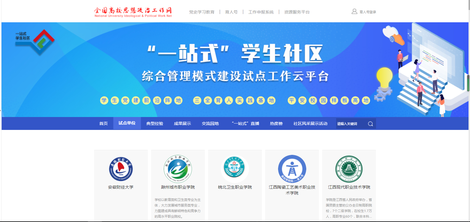 “一站式”学生社区综合管理模式建设自主试点申报工作是教育部为推进“一站式”学生社区综合管理模式建设的重要举措,旨在吸纳高校自主开展试点,依托全国高校思想政治工作网,推动全国高校交流互鉴,将高校学生社区打造成为学生党建前沿阵地、“三全育人”实践园地、平安校园样板高地,推动形成全员全过程全方位育人新格局。