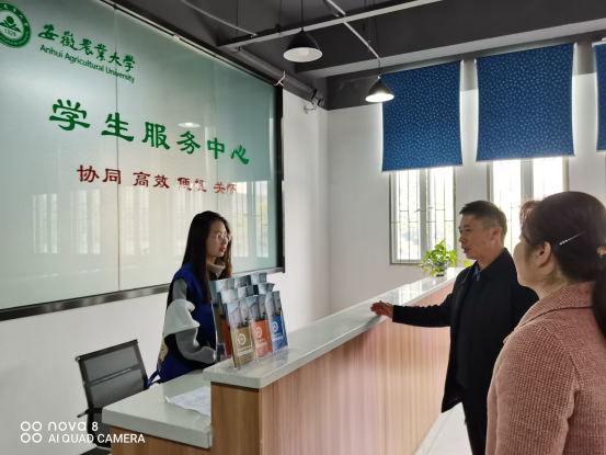 吴惠珍一行来到安徽农业大学,在学生事务管理科科长卢伟老师的带领下实地参观了学生服务中心、大学生创客空间、易班工作室和征兵工作站,并就“一站式”学生社区建设相关问题进行了座谈交流。会上,安徽农业大学校党委副书记裴树东对我校老师的到来表示热烈欢迎,并介绍了安徽农业大学近年来的发展概况;党委学生工作部部长姚莉、学生处副处长周涛分别介绍了安农大“一站式”学生社区建设的总体思路和具体做法。随后,双方就“一站式”学生社区的建设模式、组织架构等问题进行了友好探讨。