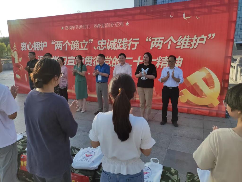 秋高气爽,微风和畅。9月9日是我校2023级新生入学报到第一天,为切实保障家庭经济困难新生不因经济压力而影响学业,学校在新生报到当天下午在南广场隆重举行了“四季助学”系列活动之“秋华助学”行动。校党委委员、副校长吴惠珍,校党委委员、学生处处长杨如江、各学院党总支书记、及各相关职能部门负责人参加了此次活动。仪式由学生处副处长徐昌灿主持。
