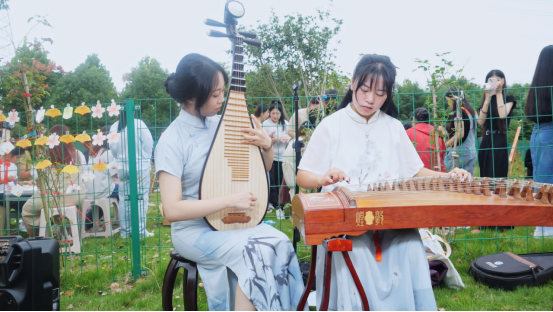 活动现场人头攒动,气氛热烈。活动共设置了汉服体验区、DIY制作区、游戏区和古筝琵琶笛子演奏区四个区域。在志愿者的引导下,同学们不仅可以体验投壶、猜灯谜、蹴鞠、捏面人等传统民俗项目,还可以亲手制作灯笼、书签、月饼、团扇……。同学们在游园的过程中尽情享受着节日的快乐,玩得不亦乐乎,欢声笑语不断。