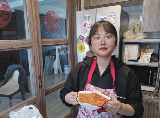 在“感恩家人”美食烹饪技能项目中,同学们纷纷系上围裙,拿起锅铲,为家人烹饪出一道道美味的佳肴。他们用实际行动表达了对家人的感恩之情,让美食与爱意一同氤氲在烟火气中。