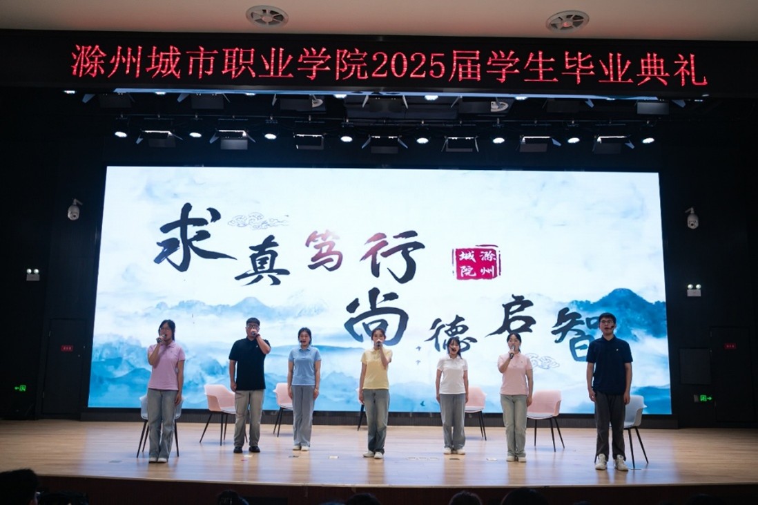 2025年6月28日上午,滁州城市职业学院2025届学生毕业典礼在润德楼报告厅隆重举行。4365名毕业生满载收获,告别承载青春记忆的校园,带着鲜明的“城院印记”踏上人生新征程。校党委书记王燕永、党委副书记、校长汪上等全体校领导,各教学院党政负责人、毕业生代表、教师代表齐聚一堂,共同见证这一庄严而温情的重要时刻。