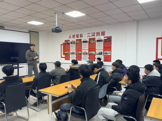 活动伊始,校武装部吴剑飞老师开展征兵政策宣讲,系统讲解报名流程、体检标准、政治考核、材料填写及役前教育安排,同时针对学费补偿、退役复学、就业优待等热点问题,进行现场答疑,坚定学生入伍信心。