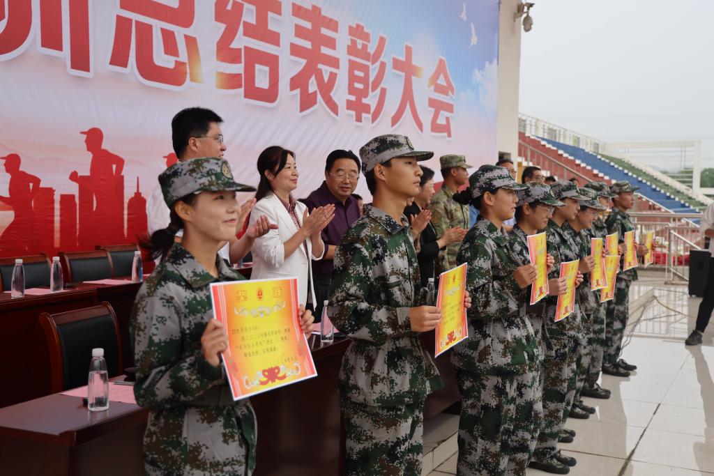 校党委副书记牛春雨代表学校向军训部队赠送锦旗,感谢军训团教官对学校新生的悉心指导。杨如江宣读了表彰文件和获奖名单,主席台前排就坐的领导为军训先进集体和个人颁发了荣誉证书。